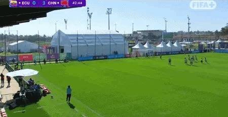 比赛第38分钟,黄沁怡越位在先进球被吹无效。 比赛第43分钟,曾屹婕开出角球,宋语头球破门。中国队4比0超越厄瓜多尔队。